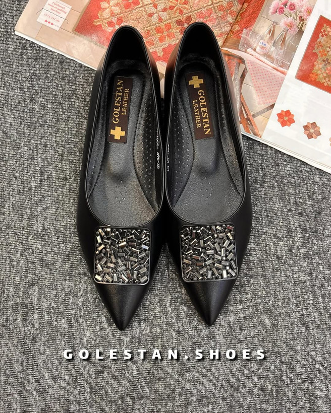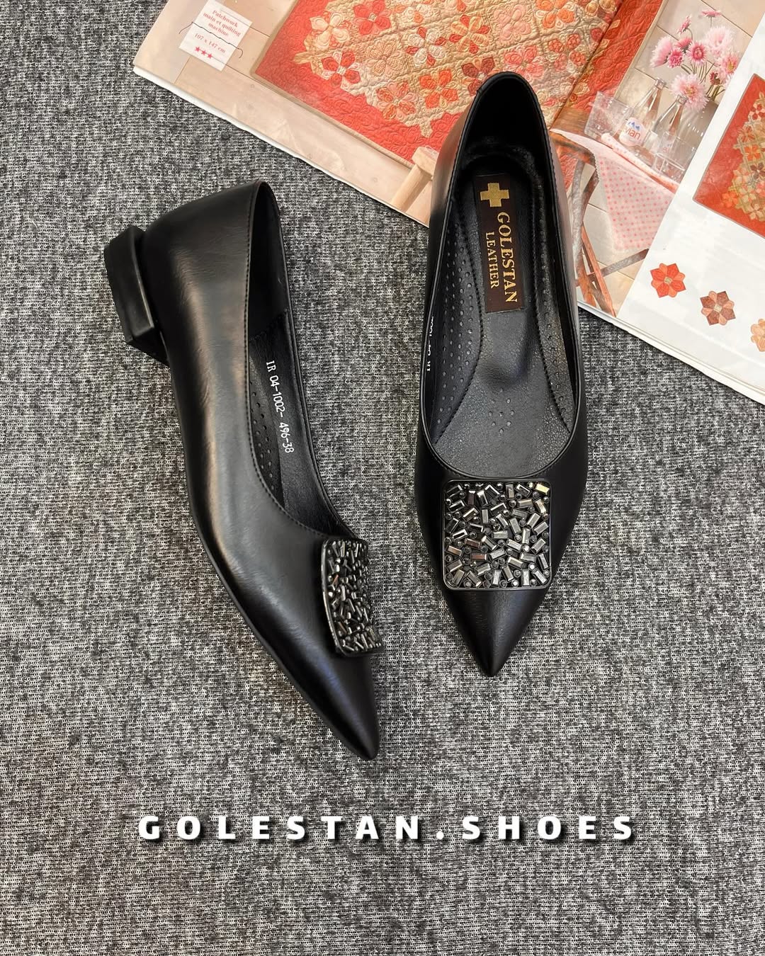 این کفش با رویه بیاله چرم و یراق فول نگین وارداتی بدون روزش طراحی شده است. مناسب برای پاهای پر و پهن و بسیار جذاب برای استایلهای شیک.