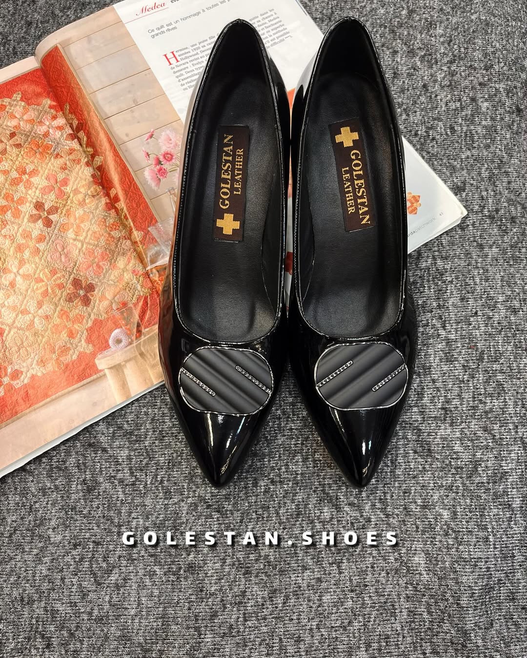 کفش پاشنهدار ورنی با طراحی کلاسیک و جزئیات ظریف، هم راحت، هم رسمی، هم خوشاستایل! رويه ورنى زيره :TPU وارداتى يراق وارداتى آستر دلتا ضدتعريق و بادوام.